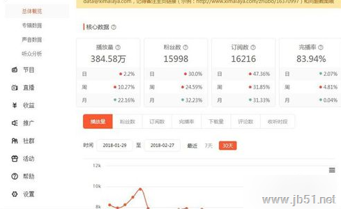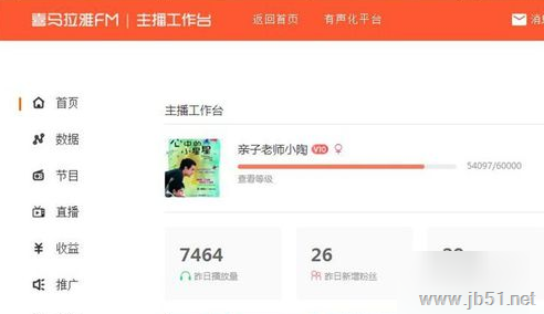 以上就是小编为大家带来的喜马拉雅FM查看播放数据和收益的方法介绍,希望能对您有所帮助,小伙伴们有空可以来脚本之家网站,我们的网站上还有许多其它的资料等着小伙伴来挖掘哦!