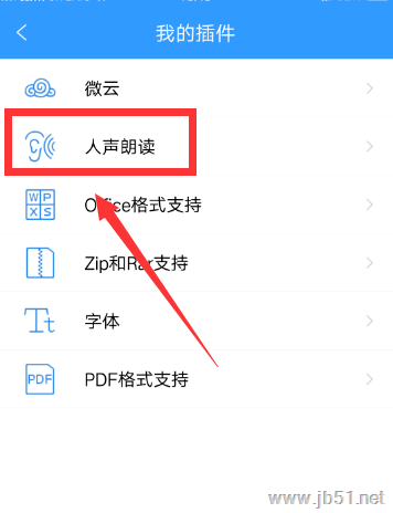 4.【我的插件】的页面,点击“人声朗读”这一项。