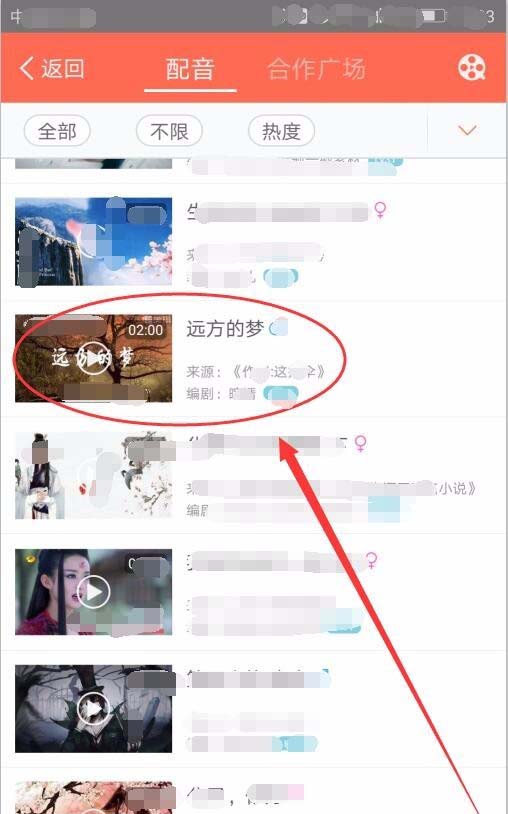 7、配音窗口中,选择一段自己喜欢的配音视频。