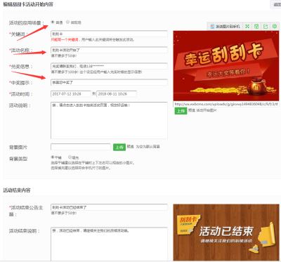 第三步:左侧微活动目录下点击---刮刮卡,点击新增刮刮卡活动,进到刮刮卡添加页面,点新增微信刮刮卡活动,开始填写刮刮卡活动的关键词、时间、内容等信息,需要注意的是活动结束的主题也需要填写的.