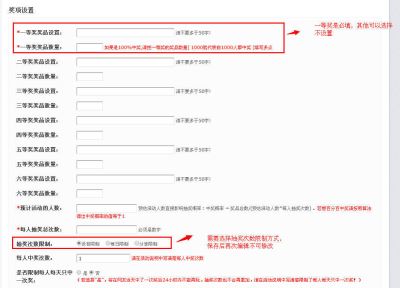 第四步:奖项设置。微信刮刮卡活动可以给粉丝准备点小的礼品,鼓励粉丝积极参与,预计人数是控制整个活动的概率的,注意看红色的说明文字,下面是兑奖密码,是供粉丝中奖后兑换使用的,其它根据自己需要选择是否使用.完成以上操作表示一个微信刮刮卡活动就制作好了