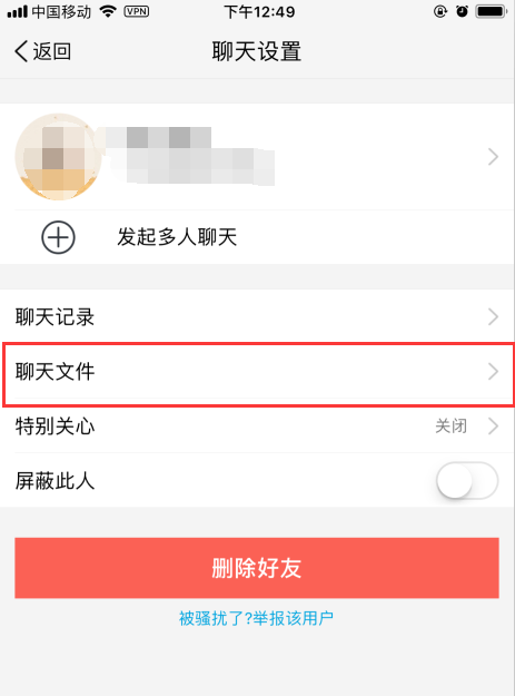 3、进入聊天设置页面后,选择下图所示的【聊天文件】