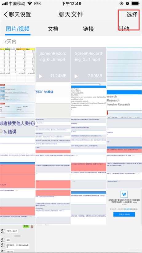 4、进入【聊天文件】页面后,选择右上角的【选择】