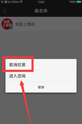5、再点击取消拉黑这一项。