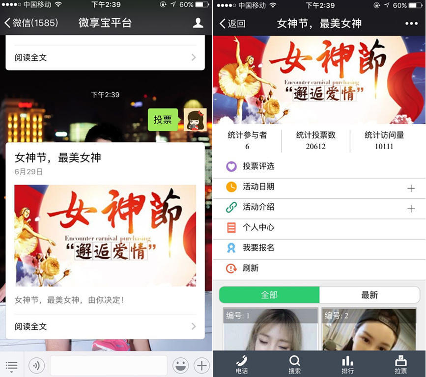 关于微信投票活动链接,更多的是指微信第三方平台开发图文投票,简单的来说就是图片投票,不再是单纯的文字投票,商家可以把参与投票的选手的图片上传到微信第三方平台的后台,然后参与投票的粉丝进入微信投票活动页面进行投票,不仅页面上增加了美观感,也比文字投票增添了许多灵动感和活力,不再是冷冰冰的文字,所以这样的微信投票也受很多商家的喜爱.