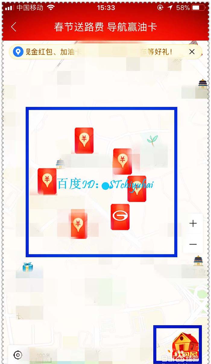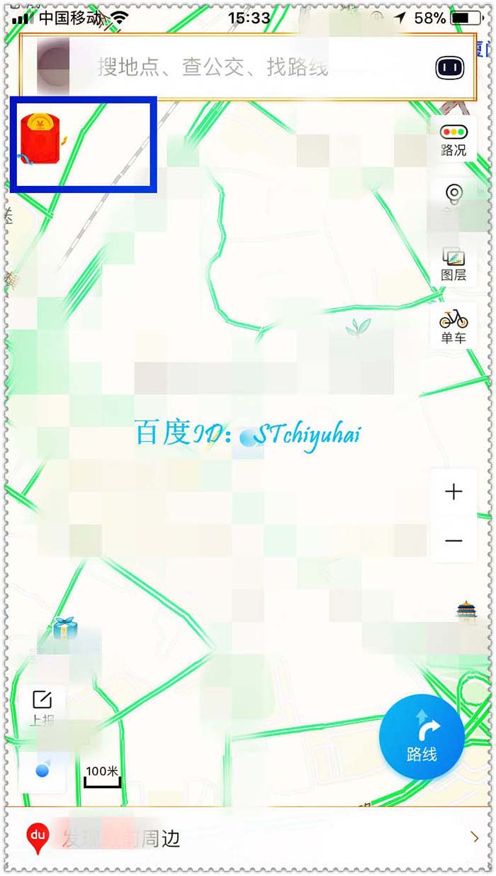 2、在主界面左上角,可以看到红包活动入口,点击进入,地图上会显示在周围有的红包,点击红包。