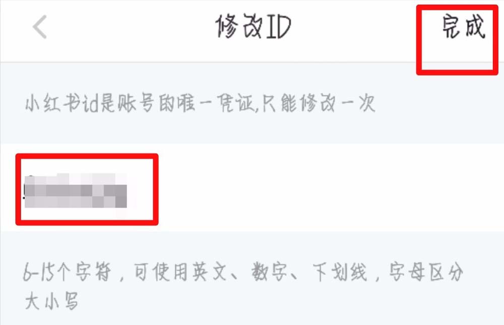 6、点击原ID修改成新的ID名称,(支持6-15个字符,可使用英文、数字、下划线,字母区分大小写。)设置了之后点击右上角的【完成】。