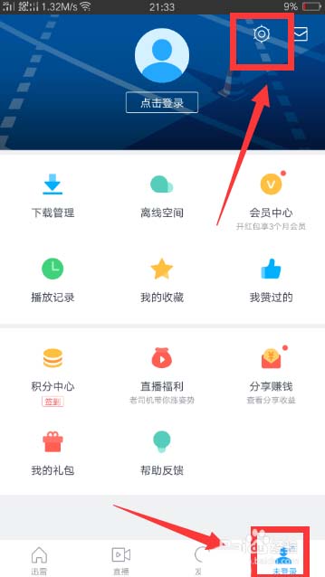 2、再进入了迅雷的页面,点击页面右下角的“未登录”这一项。