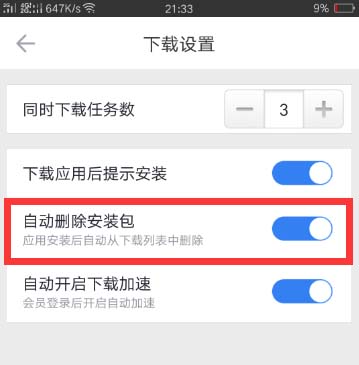 以上就是手机迅雷开启自动删除安装包的教程,希望大家喜欢,请继续关注脚本之家。