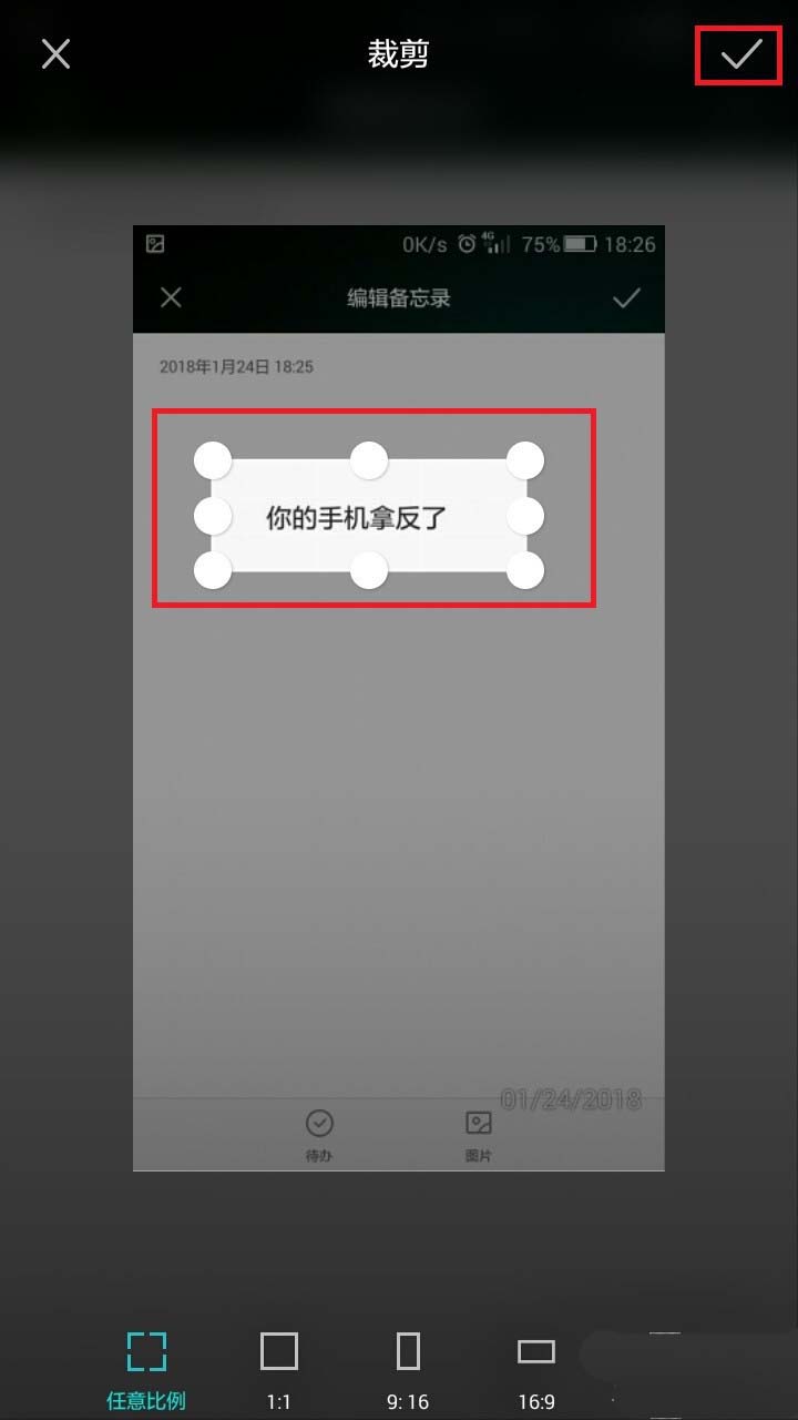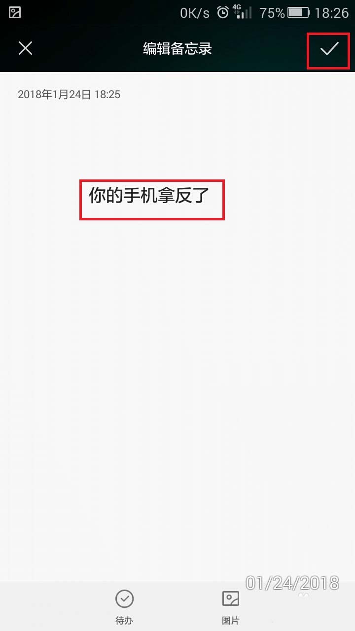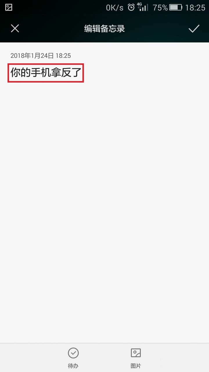 2、在备忘录或便签上新建写上你想要倒过来的字,如:你的手机拿反了。