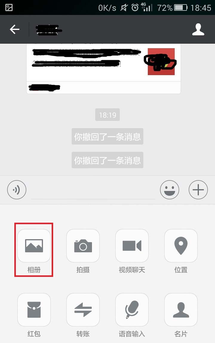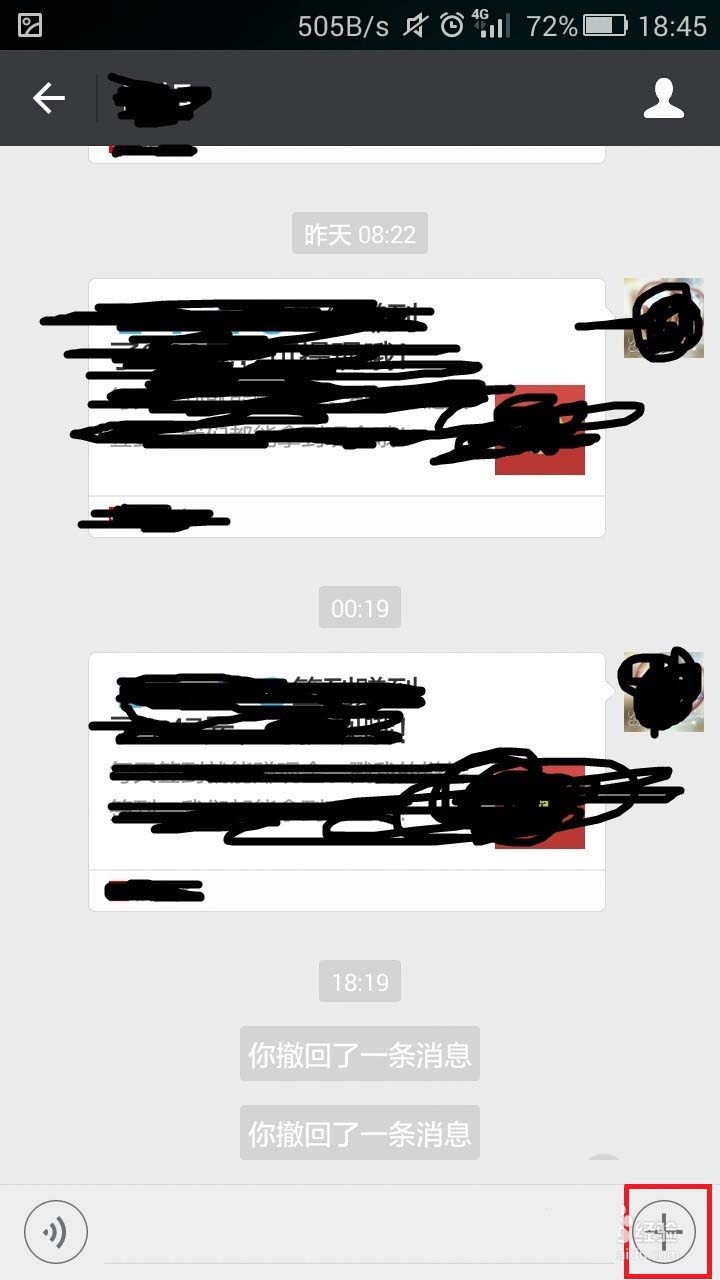 7、打开微信,找到你想要发给的朋友,在聊天界面点击+号,再点击相册,
