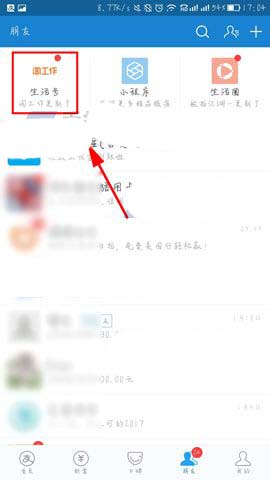 1)打开手机点击进入支付宝软件点击【朋友】选项,接着再点击上面的【生活号】功能。(如下图)