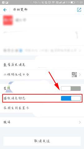 3)最后进入到生活号资料页面后点击下面【接收消息动态】旁边的按钮就可以关闭了。(如下图)