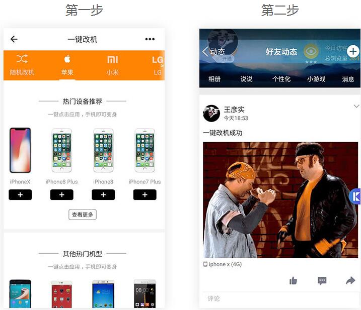 功能说明:免root一键改机,可对多开内所有APP单独设置不同机型;QQ、微博小尾巴随便挑