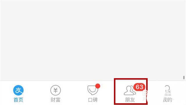 2、点击支付宝首页面底部的“朋友”页面切换按钮