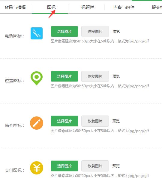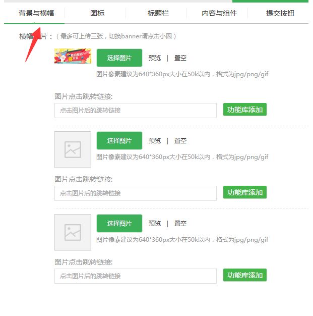 4.基础设置里,可以添加横幅图片和从功能库当中添加需要跳转的内容,图标可以根据需求自定义进行修改,提交按钮也可以自行进行设置,等于是完全可视化自定义的表单.