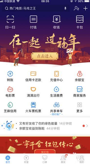 1、我们需要将支付宝更新到最新的版本,否则有很多朋友都是看不到这个扫福集福卡的界面的。进入直接点击上面的那个图片。