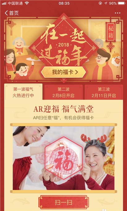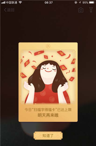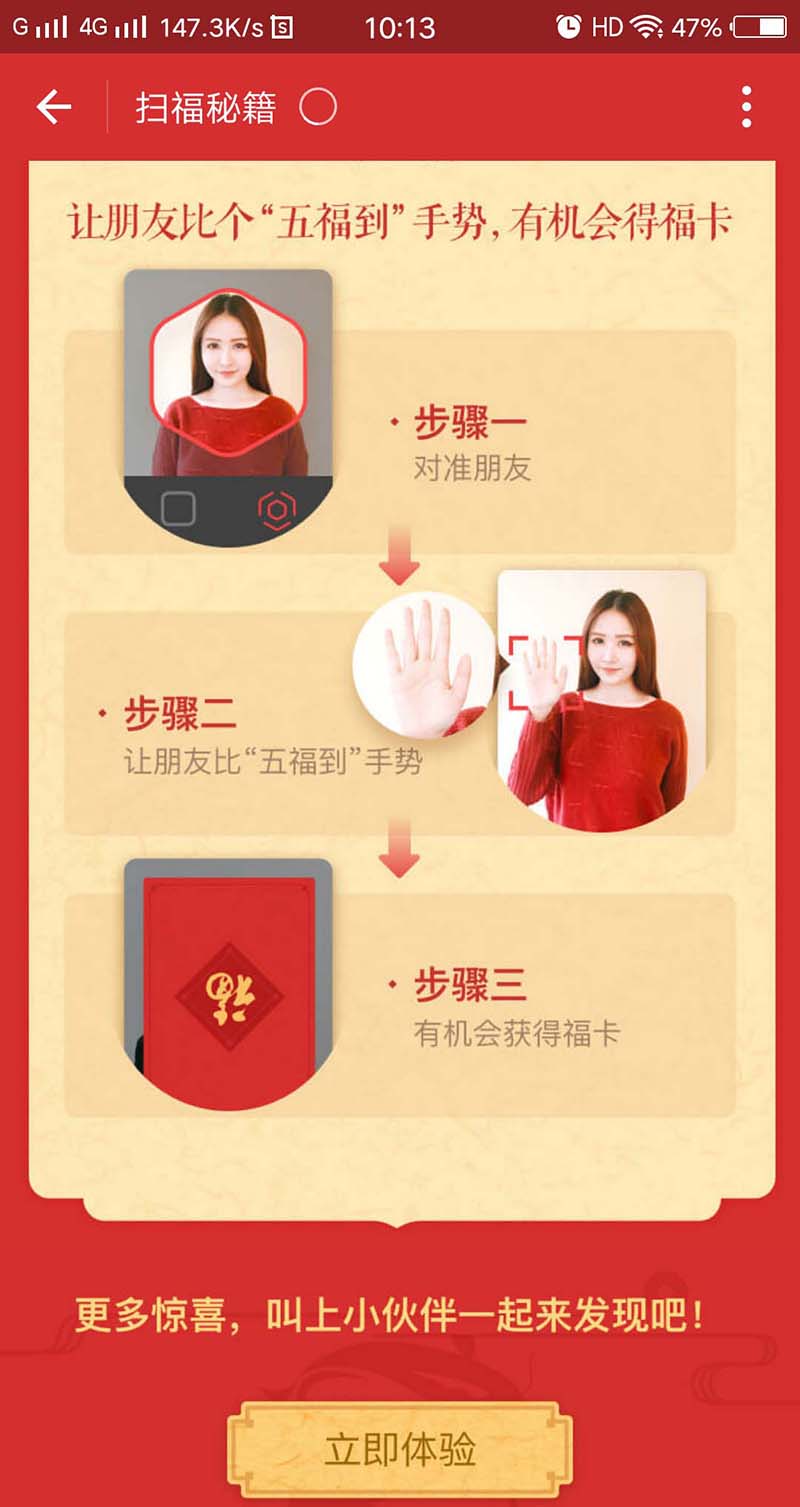 注意:伊桑是扫福可以扫2张福卡,但是通过五福到的手势还可以附加一张福卡,也就是一天最多可以扫到3张福卡