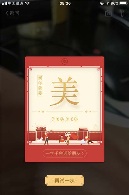 3、这会使用的是ar扫福,不是扫一扫,我们需要准备一张带有福字的照片,你自己写的也可以哦。