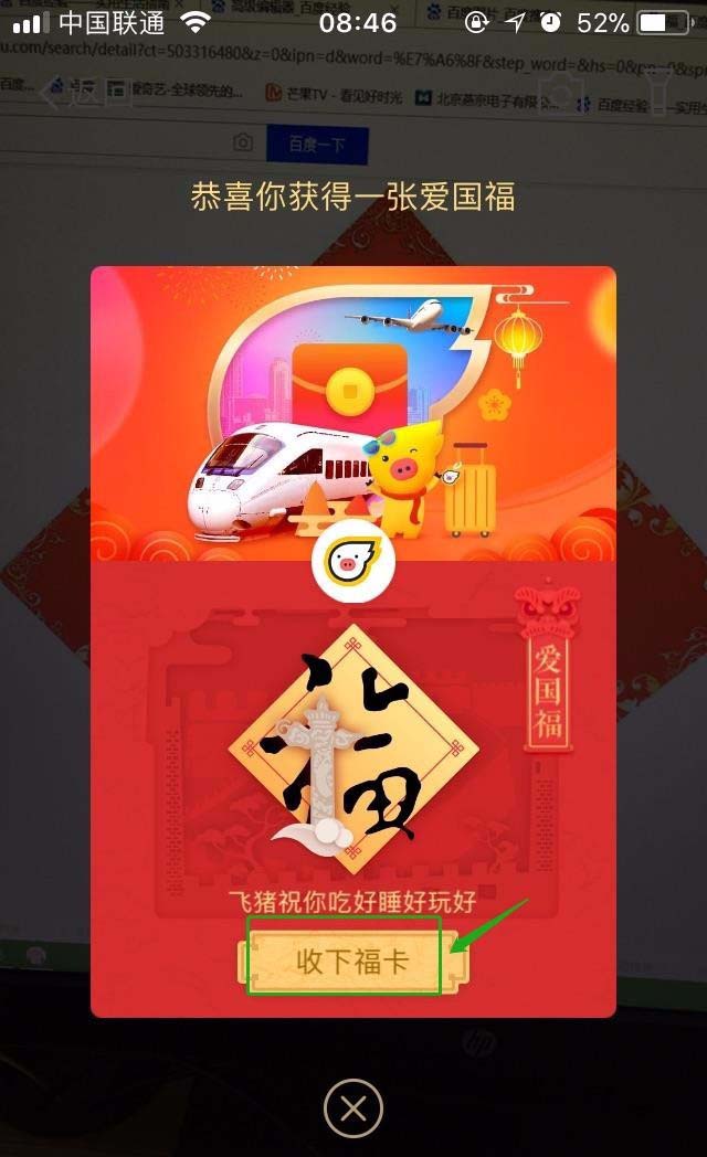 8、当我们通过不同的方式获得福卡之后,记得点击下方的“收下福卡”选项,这样我们才是真的获得福卡。