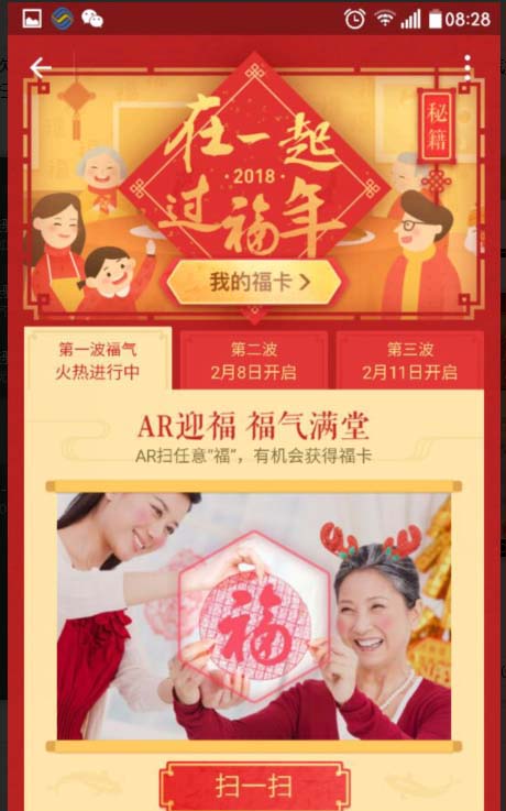 2018支付宝福卡活动开始了,今天第一天可以领到3张福卡,每张福卡背后都可以刮奖,幸运的还有现金红包哦。