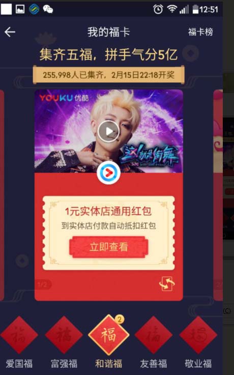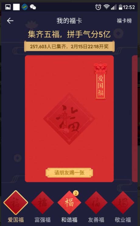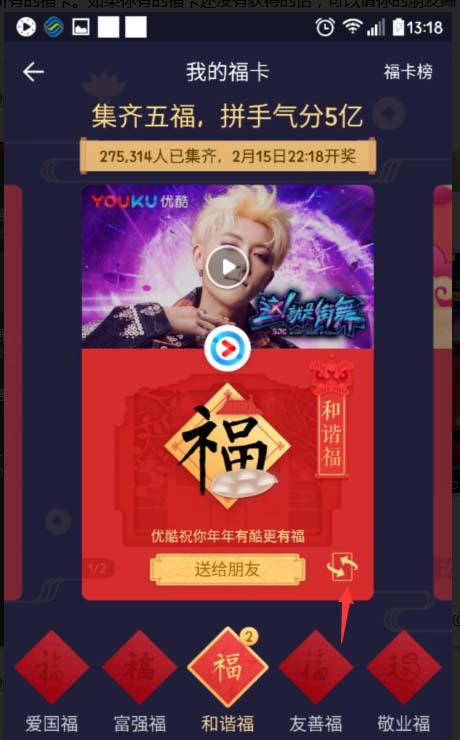 5、我们点击自己已经获得的福卡,见下图所示,就会显示你获得的福卡。