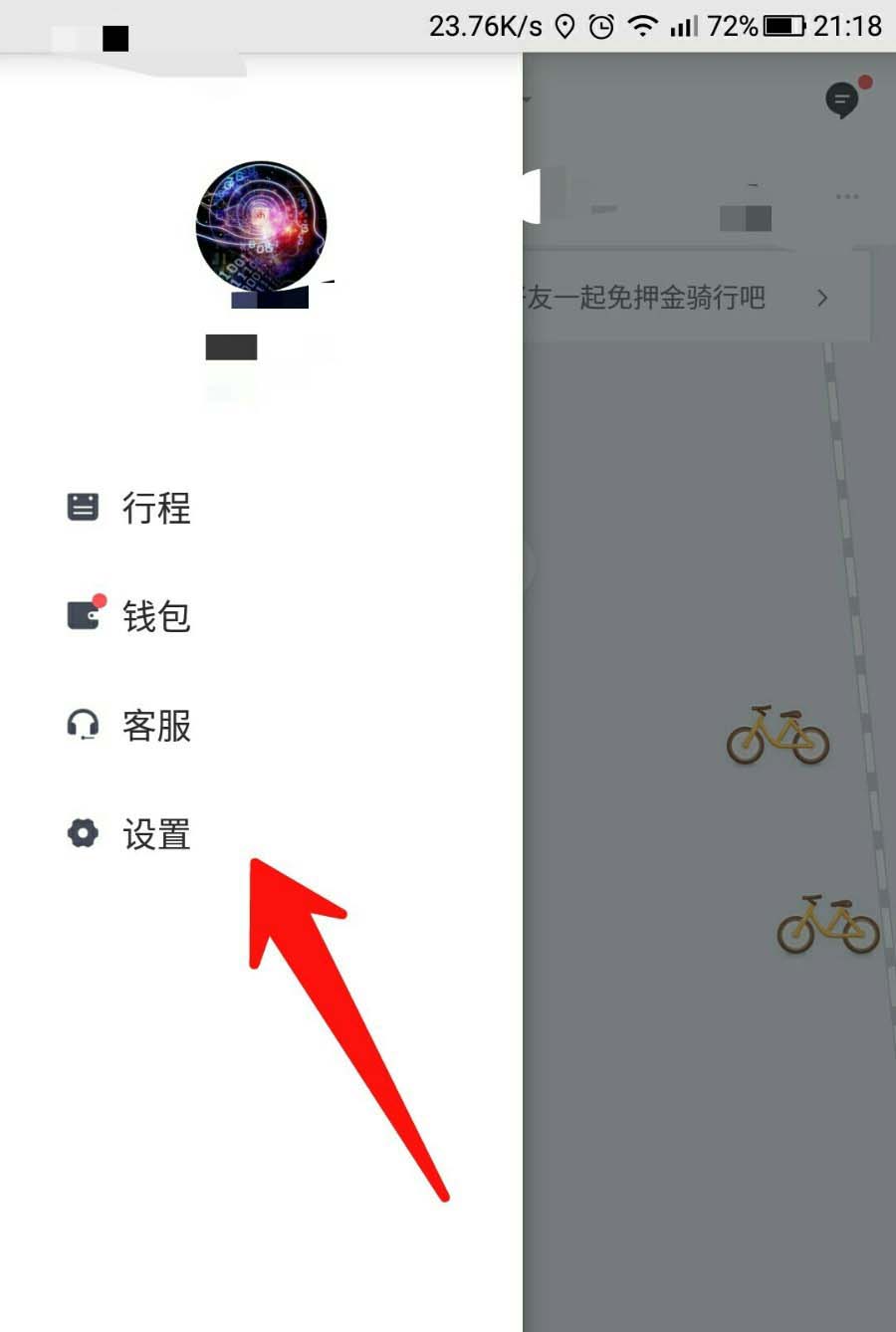1、在手机上打开软件,然后点击图中左上角“人像”图标,然后在左侧弹出的一栏中,点击“设置”。