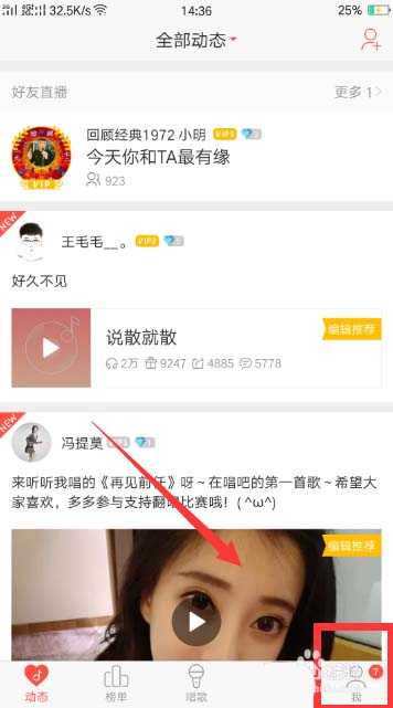 1、首先登陆到唱吧的页面,点击页面右下角的“我”。