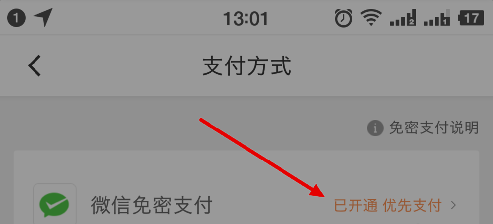 5、这时就会加载出好几种支付方式,我们选择“微信免密支付”。