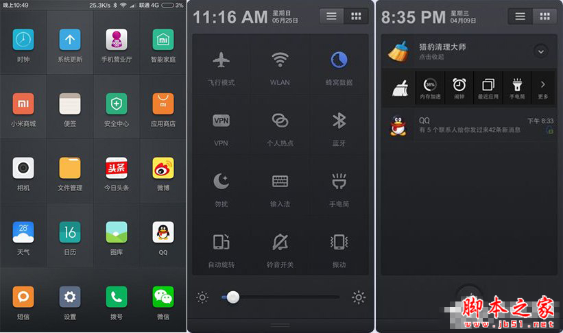 小米手机的灵魂,如果小米手机没有MIUI那他跟其他厂家的手机有什么区别。miui应该是国产Rom的佼佼者,它的Rom一直是做加法的,系统较为臃肿。但是miui从V1一直到现在的V8,它的进步是显而易见的。本土化深入系统底层,更易被国人使用。取消应用抽屉和系统美化方面见仁见智。毕竟适合你的才是好用的。