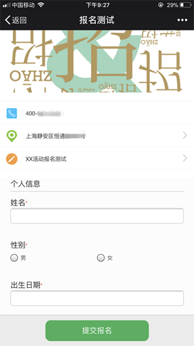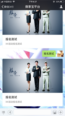 8.回复报名活动的关键词到公众号里,就会弹出来这个活动,点击填写活动,还可以分享朋友和朋友圈