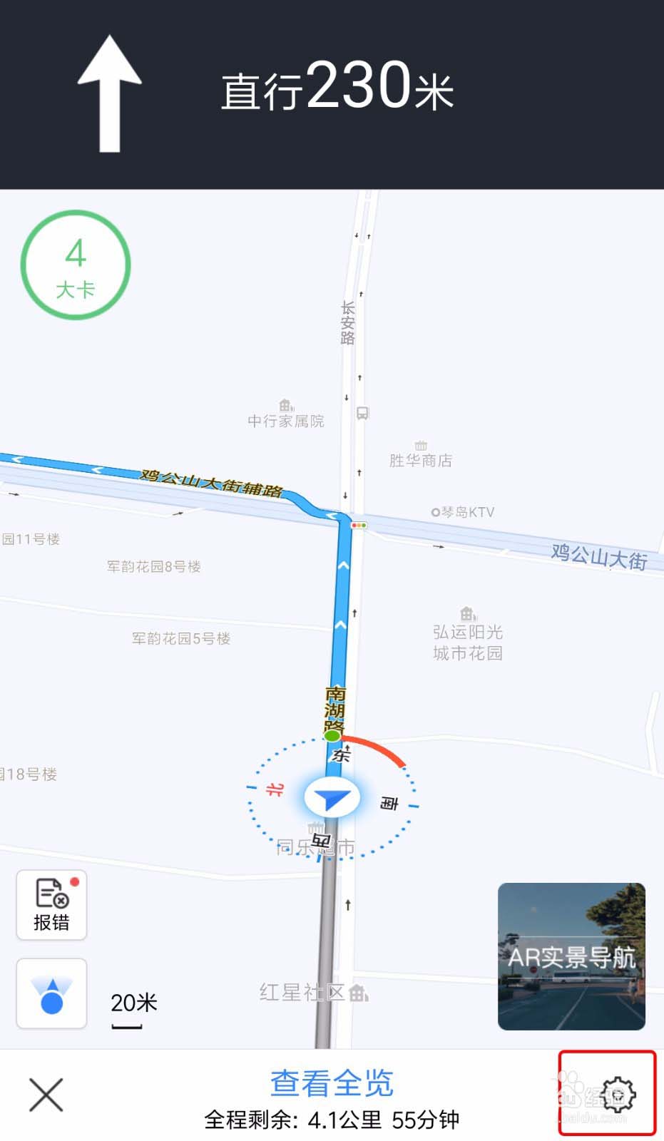 1、搜索想去的位置,点下方的“跟我走”开始进入导航界面,至于“自驾”还是“步行”看个人情况,进入导航界面后点右下角有【设置】按钮。