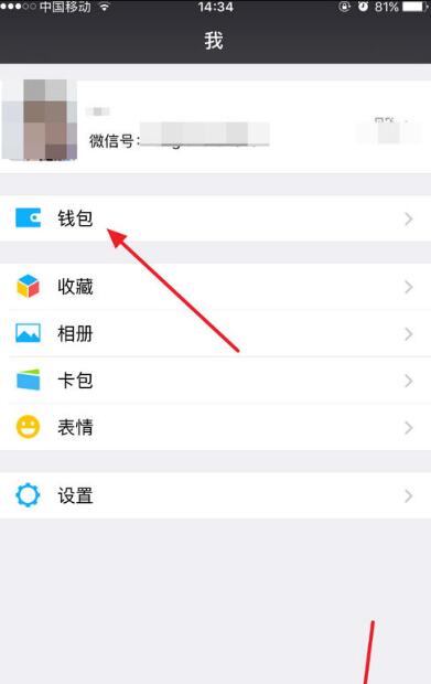 打开微信点击,我的钱包