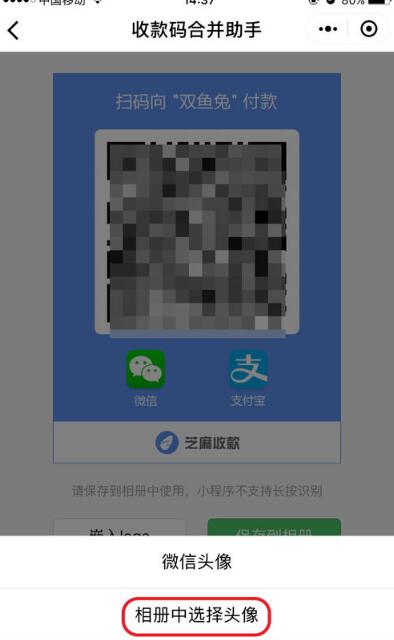 生成收款码以后长按,点击相册中选择头像。