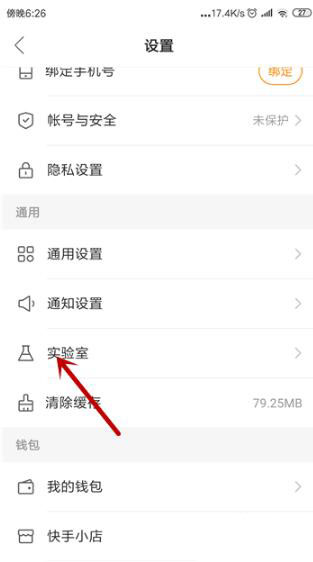 4设置里找到【实验室】功能后点击打开快手实验室。