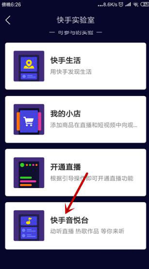 5接着在实验室里即可看到【快手音悦台】,点击打开它。