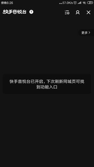 7点击之后就能打开快手音悦台了,系统会提示在同城页面可找到并进入,按照方法可进入快手音悦台。