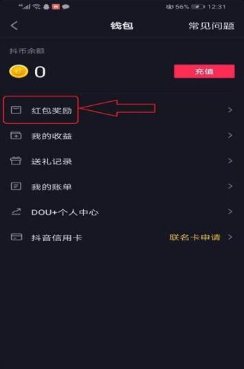 3接着再点击第三项【钱包】。点击【钱包】之后,在【钱包】的页面,点击【红包奖励】。
