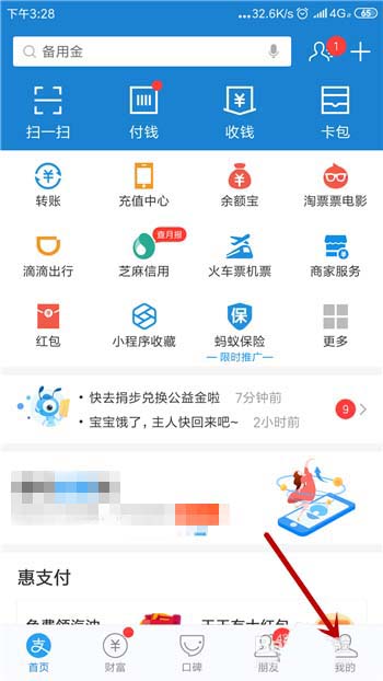 1、点击打开支付宝,进入主界面后点击右下角的【我的】。