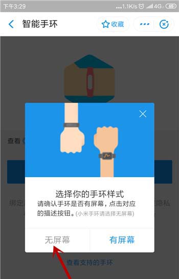 8、然后我们需要选择手环样式,这里我们点击【无屏幕】。