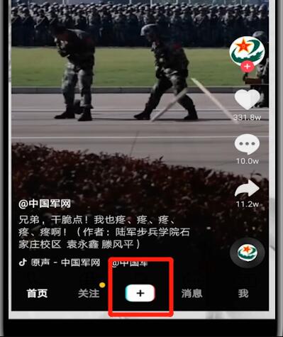 1.打开抖音,点击下方的加号