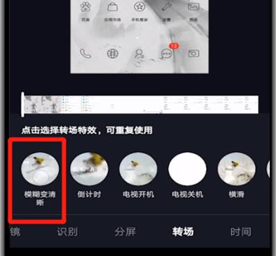 3.点击左下方的特效,点击转场