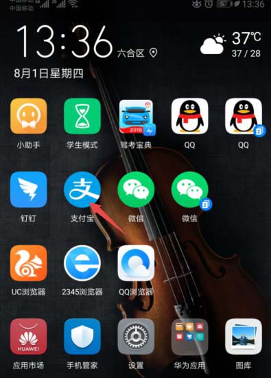 1、先打开手机,之后点击手机桌面上的支付宝;