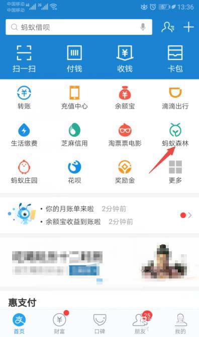 2、然后点击蚂蚁森林;