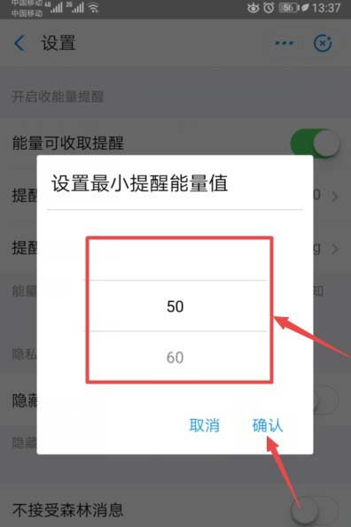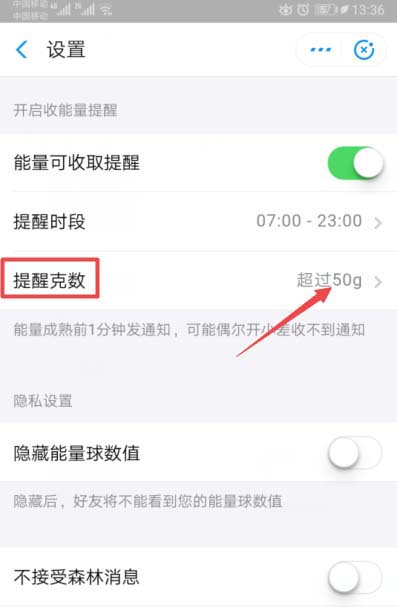 9、然后选择一个克数,之后点击确定即可。这样就设置好蚂蚁森林的收取能量的时间了。