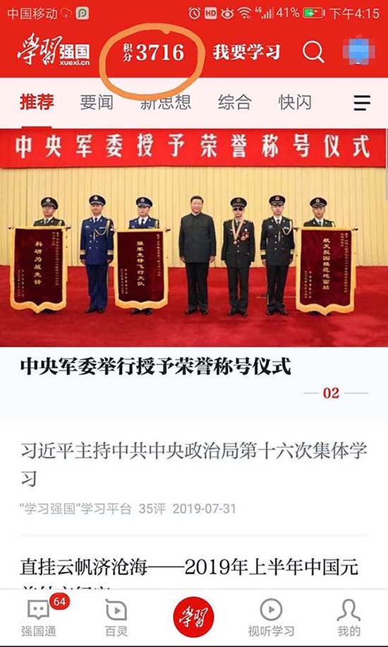 1、首先登陆学习强国,点击正上方分数进入学习任务。