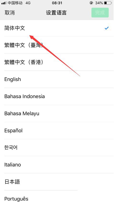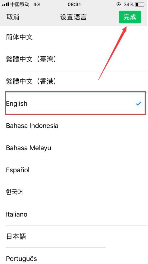 6、然后我们选择下面的“English”,点击右上角的“完成”按钮即可,如图所示。