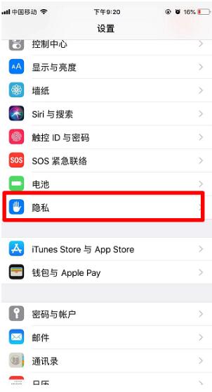 进入“隐私”。