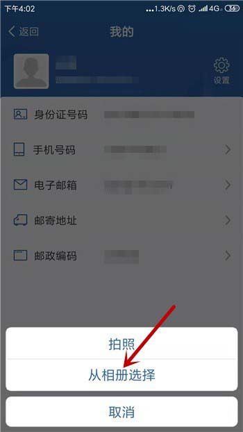 3、之后需要选择更换头像的途径,这里可以拍照或者从相册里选择。
