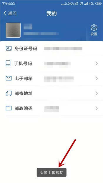 7、返回到我的界面就看到头像更换成功,底部会提示【头像上传成功】。